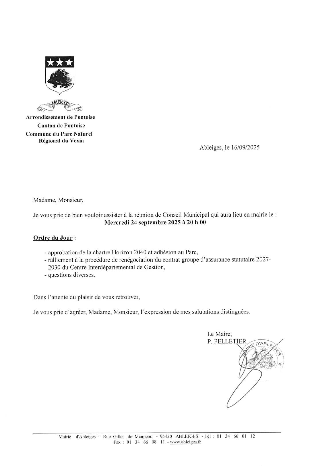 Conseil municipal 24 septembre 2025, 20H00 Posted on 20 mai 20251 octobre 2025 by Sandrine Veuillez trouver l’ordre du jour ci-dessous du conseil municipal :